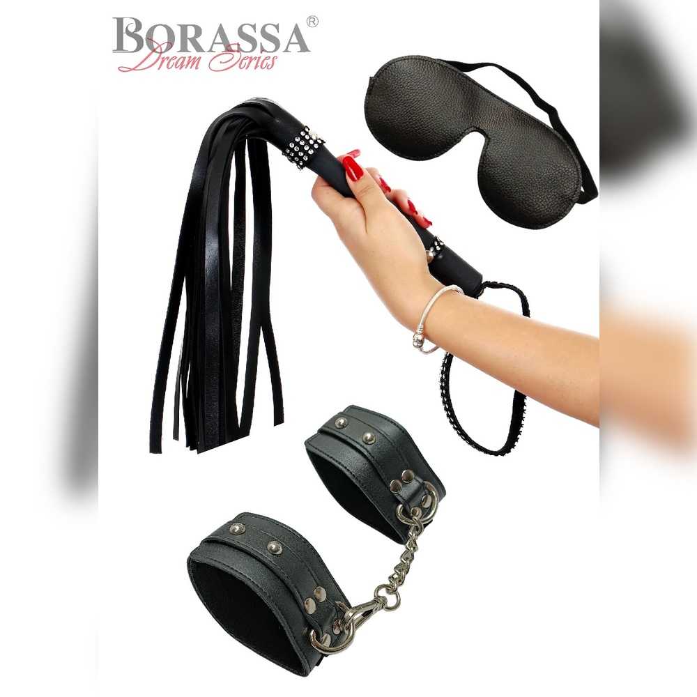 Fetish Deri Kelepçe Kırbaç 3’Lü Set Siyah