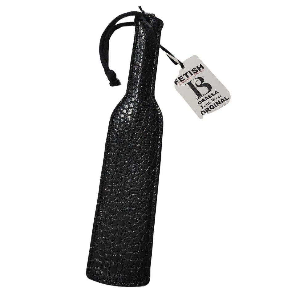 Fetish siyah parlak deri şaplak, çiftler arasında güvene dayalı fantezi ve BDSM oyunlarında kullanılan özel bir aksesuardır. Amaç, ilişkiye heyecan, otorite ve duyusal çeşitlilik katmaktır.