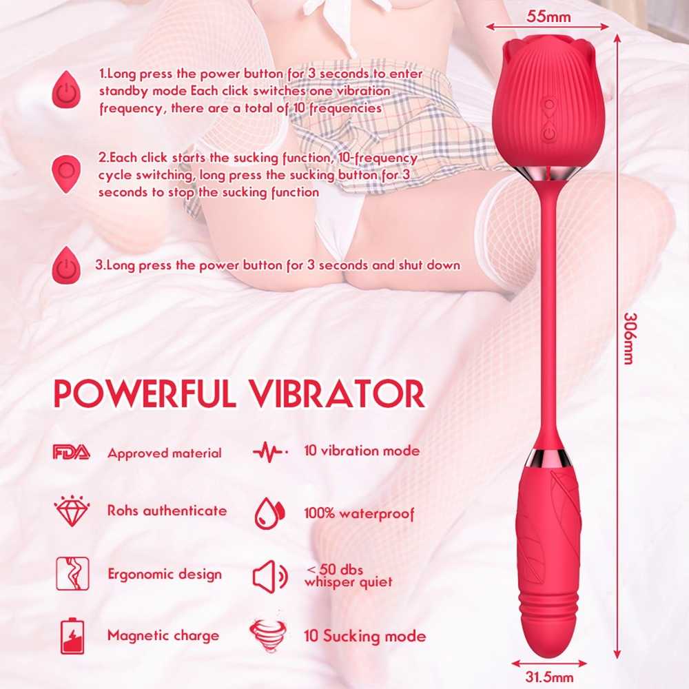 Gül Tasarımlı Çift Fonksiyonlu Vibratör, zarif gül formu ve gelişmiş teknolojisiyle estetik ile işlevselliği bir araya getirir. Toplam 10 emme modu ve 10 titreşim seviyesi, farklı kullanım tercihlerine uyum sağlayarak kişiselleştirilmiş bir deneyim sunar.